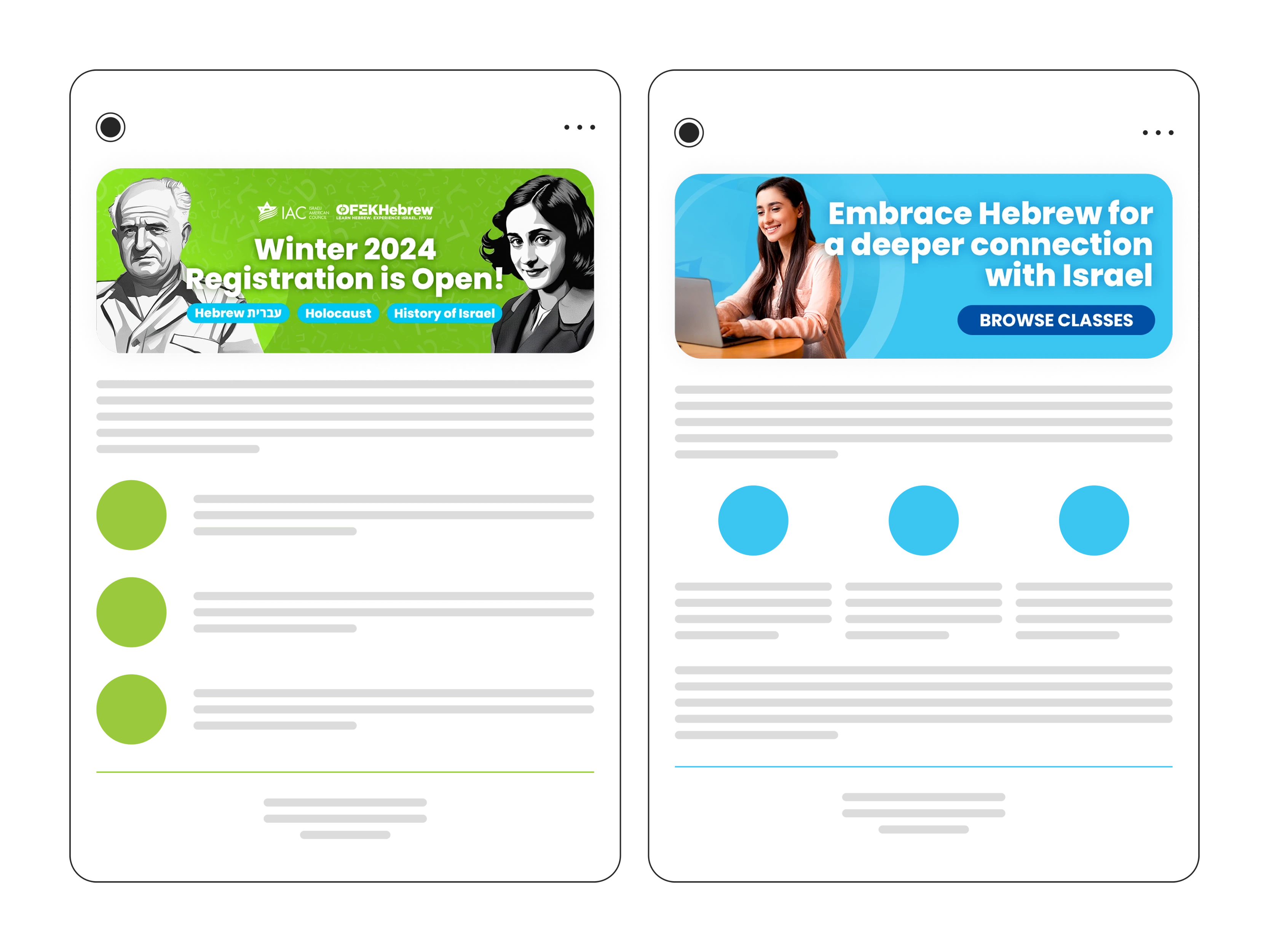 My goal was to create visual alignment across landing pages, social media, ads, and printed materials, while developing scalable systems that allowed the OFEK team to launch new courses and campaigns without reinventing the wheel each time.